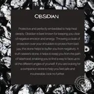 Protective and perfectly embedded to help heal deeply, Obsidian is best known for keeping you clear of negative emotion and energy. Throwing a cloak of protection over your shoulders to protect from bad juju, this stone helps to buffer you from negativity. A truth-seeker's stone, it helps to keep you from the path of falsehood, enabling you to find a way to face up to all the different angles of yourself. If you are looking for a companion stone to help you feel safe and invulnerable, look no further.